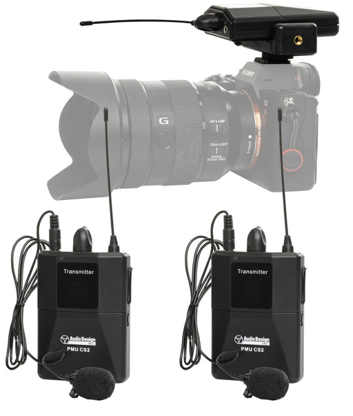 Sistema wireless a 2 canali per camera, Android e IOS. 2 trasmettitori e ricevitore a body pack-con accessori di fissaggio - 16 Ch auto pairing- Mi...