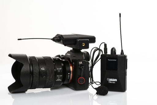 Sistema wireless a 1 canale per camera, Android e IOS. Trasmettitore e ricevitore a body pack-con accessori di fissaggio