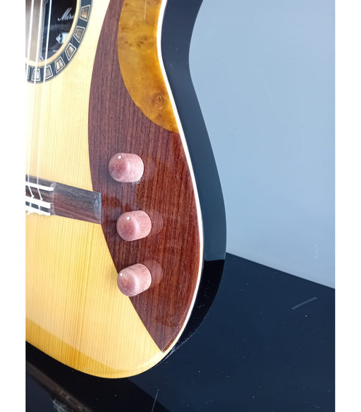 Visualizza tutti i dettagliBODY:body shape- merida stagetop- solid torrefied spruce with rosewood and camphor burlsback- solid camphor burlsbody thickness - 44mmbody finish -...