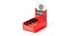 Espositore con 12 scatole di ogni misura; cinque misure/scatole contenenti 6 plettri ciascuna.