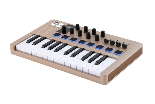 Il MiniLab 3 Champagne è un controller MIDI compatto con una finitura cromatica molto accattivante in edizione limitata, ideale per i produttori ch...