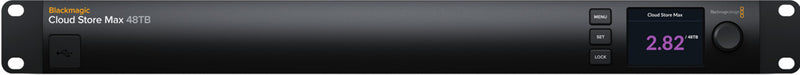Blackmagic Cloud Store Max 48TB è una soluzione di archiviazione flash ad altissima prestazione in un design compatto da una unità di rack. Dispone di 48TB di capienza, memoria core flash RAID 0 composta da 12 schede, 4 x 10G Ethernet, 100G Ethernet, ingresso QSFP per cavi in rame ad alta velocità o cavi più lunghi in fibra ottica, USB-C e sincronizzazione su Blackmagic Cloud per distribuire i file in tutto il mondo, anche quando numerosi utenti sono connessi contemporaneamente.