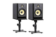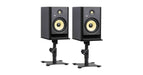 Costruito in acciaio verniciato a polvere nera, offre un'inclinazione regolabile fino a 15 gradi, consentendo di dirigere il suono verso il punto di ascolto ottimale. La base ampia e stabile garantisce una solida tenuta, mentre la superficie della piattaforma è rivestita in EVA per proteggere i monitor.