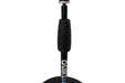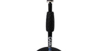 Asta microfonica bassa con base tonda in ghisa con sotto un anello in gomma antiscivolo e a protezione delle superfici di appoggio.