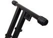 I supporti per tastiera Quik Lok T/550 e T/500 sono dotati di sistema TRIGGER-LOK, progettato da QUIK LOK che permette di regolare il supporto su 5 sicure posizioni in altezza con la parte meccanica completamente coperta e senza nessun componente in vista. Il meccanismo permette di aprire, regolare l’altezza desiderata e richiudere il supporto velocemente, tirando o lasciando la leva (trigger) posta sotto il braccio destro dello stand. Non ci sono pulsanti, manopole o tiranti da manovrare sul disco centrale. Questo particolare accorgimento dona ai robusti supporti T550 e T500 un design pulito ed elegante.